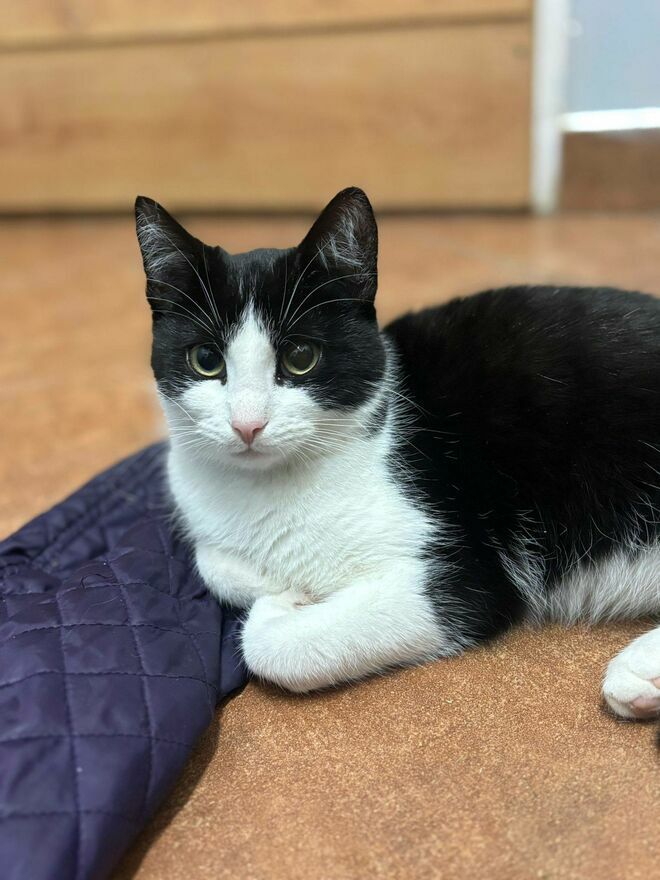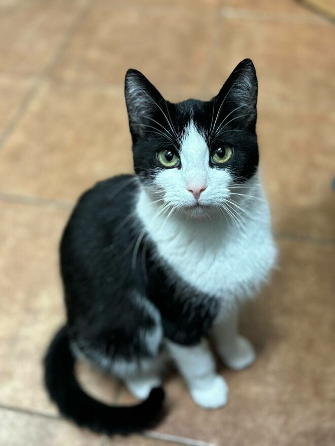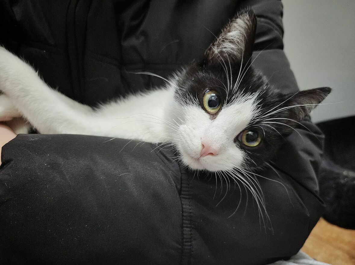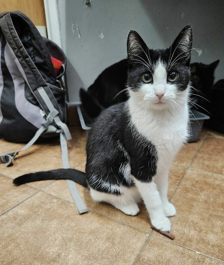 Kolejny z braci czarno białych kocurków, który poleca się do adopcji to Bibi. Kotek podobnie jak reszta braci jest uroczy, piękny i rezolutny. Kocurek ma około 10 miesięcy i niestety swoje dzieciństwo spędza w schronisku. Prosimy o domek!Bibi ponad wszystko kocha ludzi i w schroniskowej kociarni jako jeden z pierwszych wita odwiedzających i ustawia się w kolejce do głasków. Kocurek nie jest zbyt cierpliwy więc czasem nawet przeciska się przed inne koty uznając że wystarczająco długo już czekał aż ktoś łaskawie go odwiedzi. W kontakcie z człowiekiem non stop łasi się, mruczy, nadstawia pysia i zmienia strony do głaskania. Ciężko nie ulec urokowi tego słodkiego chłopczyka. Przytulany, całowany, smyrany jest przeszczęśliwy i choć na chwilę może zapomnieć o smutnej schroniskowej rzeczywistości. Mały łobuziak gdy nie dostaje uwagi zaczepia nas i chwyta delikatnie ząbkami próbując nakierować nasze dłonie na właściwego kota. Bibi bardzo lubi inne koty, często próbuje nawiązać z nimi kontakt, ociera się o nie i czasem jest zaskoczony że jego miłości są nieodwzajemnione.