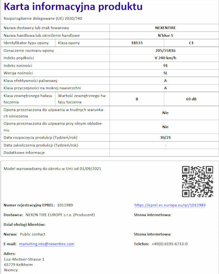 4 Opony letnie Nexen N'blue S 205/55R16 91 VMam do sprzedania komplet 4 opon. Zostały ściągnięte z nowego samochodu po przejechaniu zaledwie 1500 km. Opony Nexen idą na fabryczny pierwszy montaż do np. samochodów Skoda. Stan idealny - jak nowe. Znakomite parametry. Zmiana opon ze względu na zmianę rozmiaru felg.