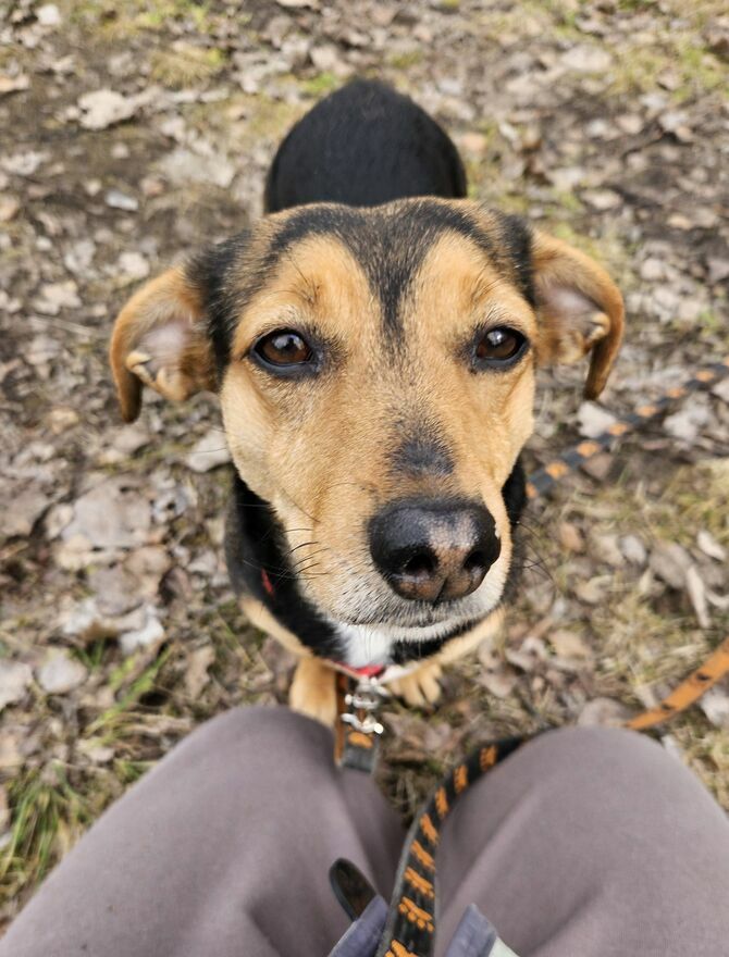 Przy osobach, które zna, robi już postępy. Na spacerach zdarza jej się rozluźnić, zapomnieć o swoich obawach, a nawet zaprosić opiekuna do zabawy. Widać, że drzemie w niej radosny, młody pies – potrzebuje tylko czasu i cierpliwego przewodnika.