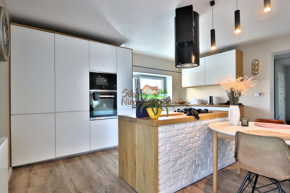 Nieruchomość zlokalizowana jest w obrębie Nadodrze, w jego spokojniejszej części, gdzie nie ma już śródmiejskiego gwaru, a raczej spokojne podmiejskie życie w niedalekiej odległości od szkół (800 metrów do szkoły podstawowej), przedszkoli, sklepów, przychodni czy kościoła. Sam dom to 155,81 m2 powierzchni użytkowej, która rozkłada się na 3 kondygnacje piwnicę, parter i piętro. W piwnicy znajdziemy kotłownię oraz 3 pomieszczenia piwniczne - czyli mnóstwo przestrzeni do przechowywania. Na parterze znajdziemy otwarty salon z kuchnią, której nie powstydziłby się żaden pasjonat gotowania - trójkąt roboczy, praktyczna wyspa kuchenna z płytą gazową i okapem nad nią, zabudowa kuchenna, która pomieści znaczne ilości sprzętów kuchennych, innych przyborów, zastaw, czy jak modnie się teraz nazywa utensyliów, a także wszelkich niezbędnych przedmiotów. Zaraz za wyspą kuchenną swoje miejsce znalazł stół wraz krzesłami dla całej rodziny, aby spokojnie spędzić czas przy wspólnym posiłku. Kontynuując spokojny dzień przejdźmy, więc do salonu, gdzie wita nas elegancki kominek ze znajdującą się na wprost obszerną kanapą oraz telewizorem, a jakby tego było mało to mamy urokliwy ogród zimowy, który zdaje się mówić zapraszam, spędź we mnie czas. Oczywiście na parterze znajdziemy również pełnowymiarową łazienkę, w której znajdziemy prysznic typu walk-in z odpływem liniowym, a także toaletę oraz znacznej wielkości umywalkę z eleganckim lustrem. To nie koniec pomieszczeń na parterze - mamy tutaj jeszcze spory gabinet, który również posiada wyjście do ogrodu zimowego. Przechodząc po drewnianych schodach znajdujemy się na piętrze, gdzie znajdują się 3 sypialnie i łazienka z dużą narożną wanną dla miłośników wieczorów z książką w wannie lub po prostu radości z bąbelków (oczywiście tych z wanny ;) ). Ciepłą wodę do tejże wanny, a także innych punktów wodnych w domu zapewnia dwufunkcyjny piec gazowy marki Viessmann znajdujący się w kotłowni, który dba również o ogrzewanie domu. W kilku słowach o domu trudno się zmieścić. Ale tak w dużym skrócie: przeszedł całkowitą metamorfozę zarówno pod względem układu pomieszczeń, ocieplenia budynku, wymiany okien na 3 szybowe, źródła ciepła, instalacji elektrycznej, wodno-kanalizacyjnej i gazowej.