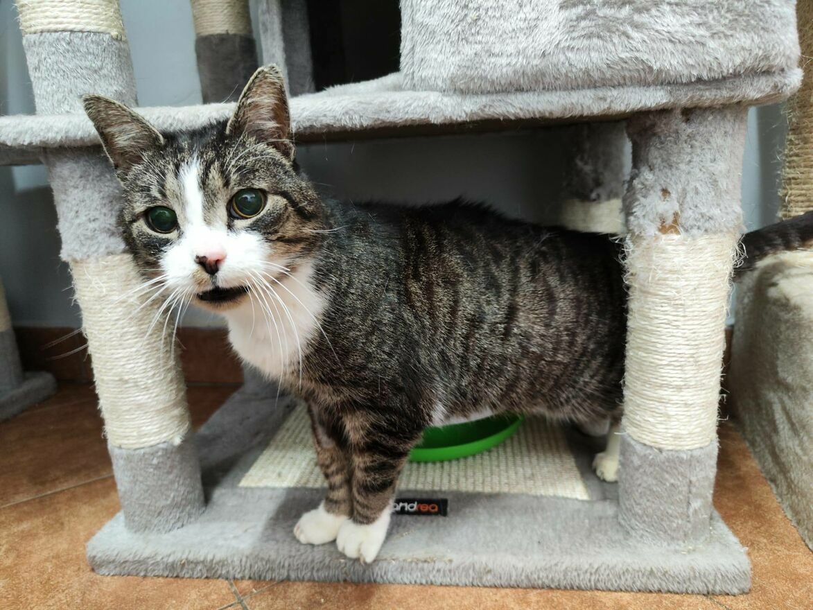 Bardzo martwimy się o Tygryska, ponieważ w schronisku żyje on w ogromnym stresie. Przez to że niedowidzi boi się przemieszczać po kociarni, a jak już to robi to przeważnie wpada na inne koty. Wywołuje to konflikty i Tygrysek często obrywa w takich sytuacjach. On sam celowo nie wchodzi innym kotom w drogę, ale gdy poczuje się zagrożony burczy i w ten sposób próbuje odstraszyć inne koty i zapewnić sobie bezpieczeństwo.