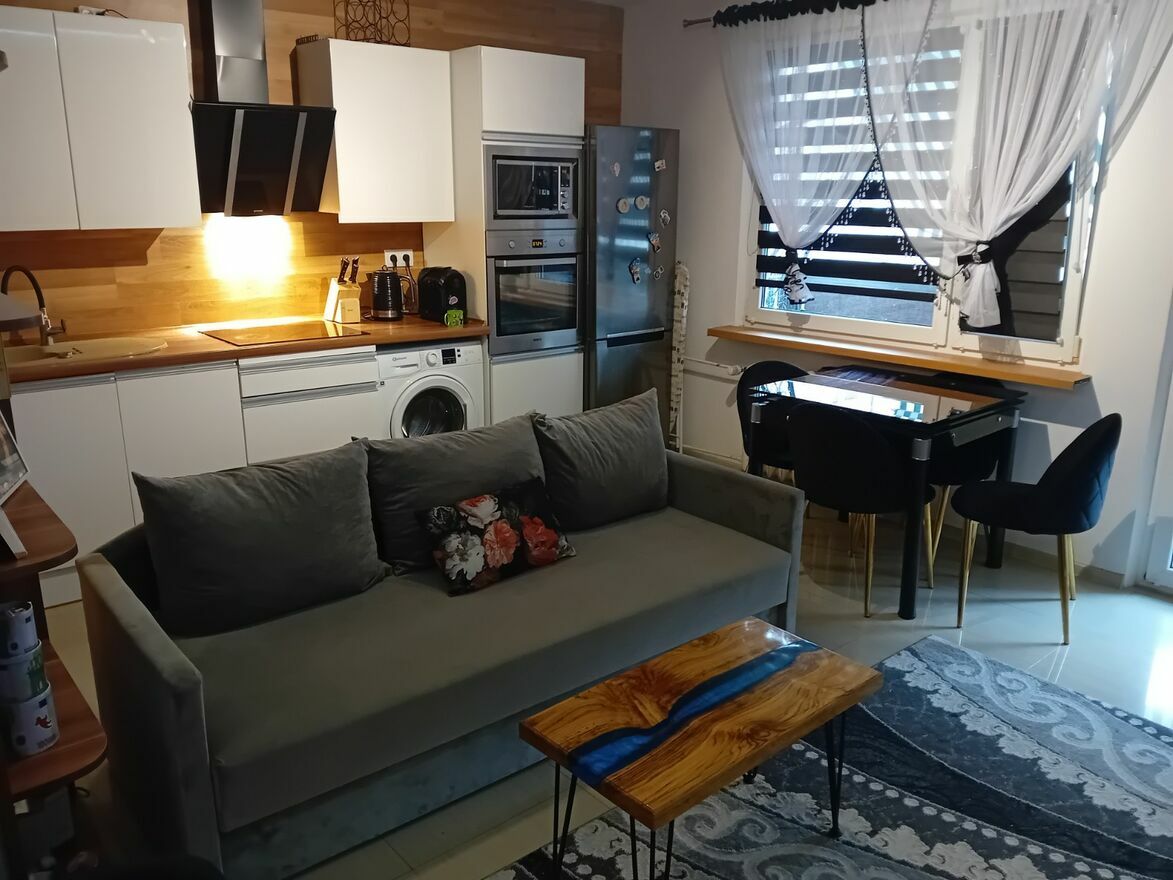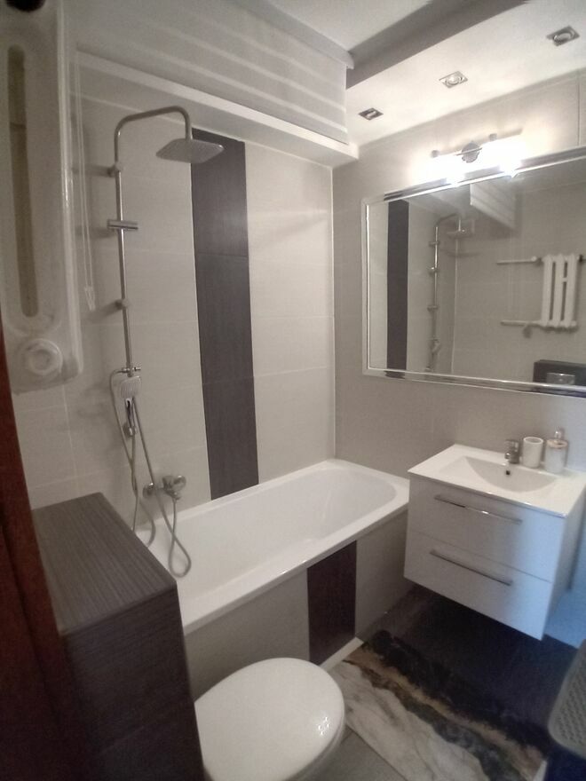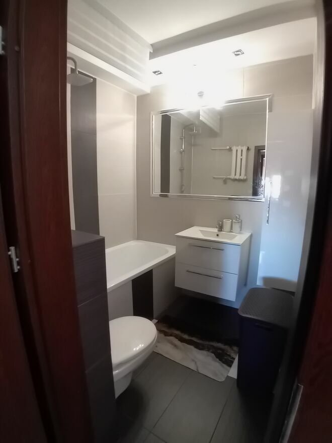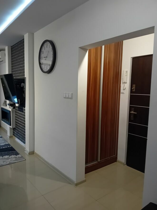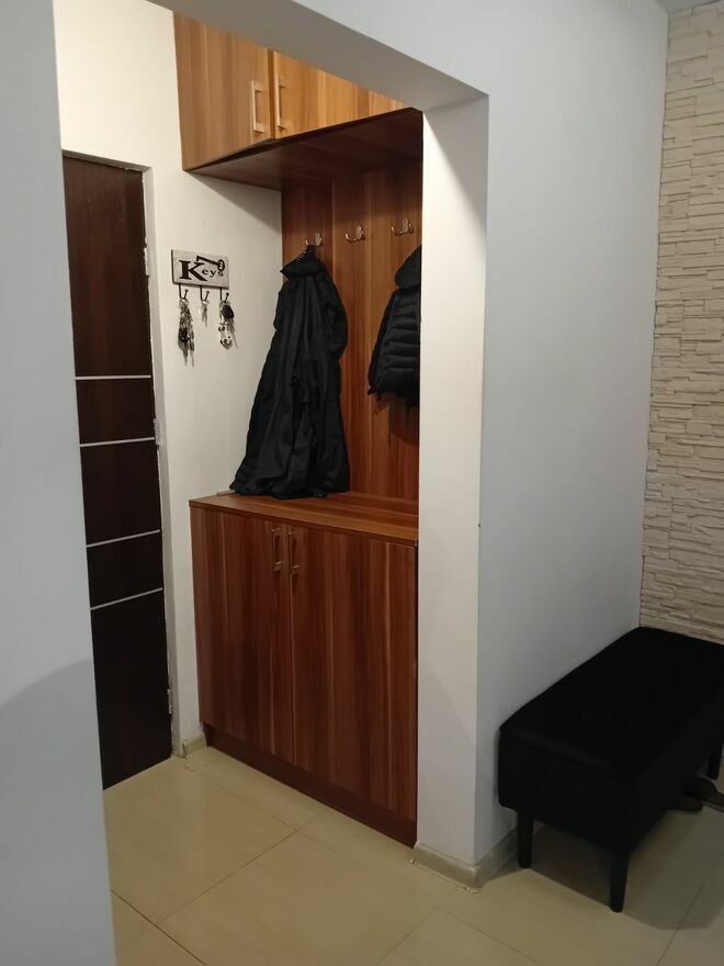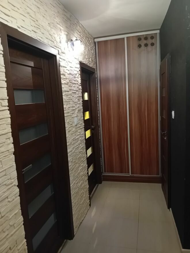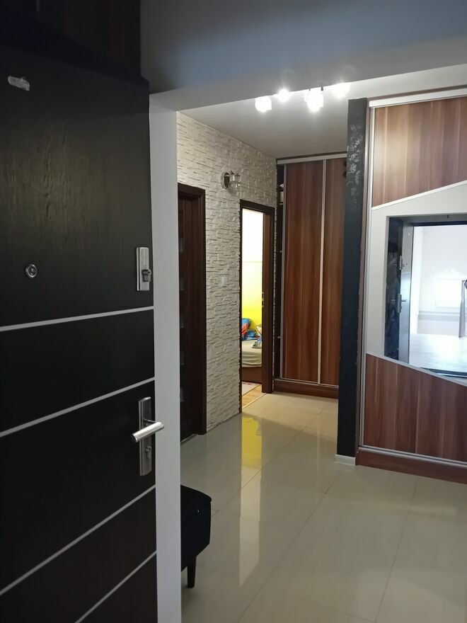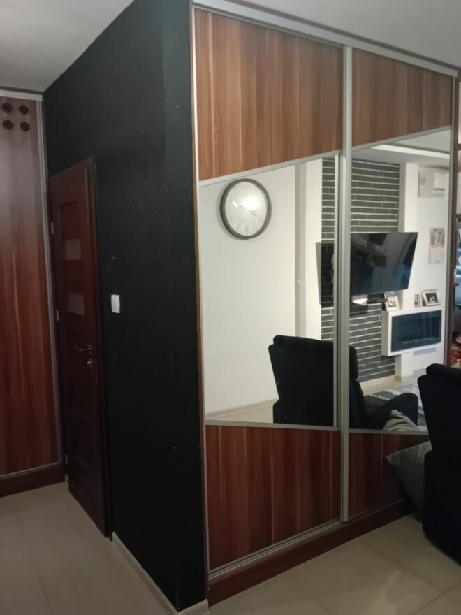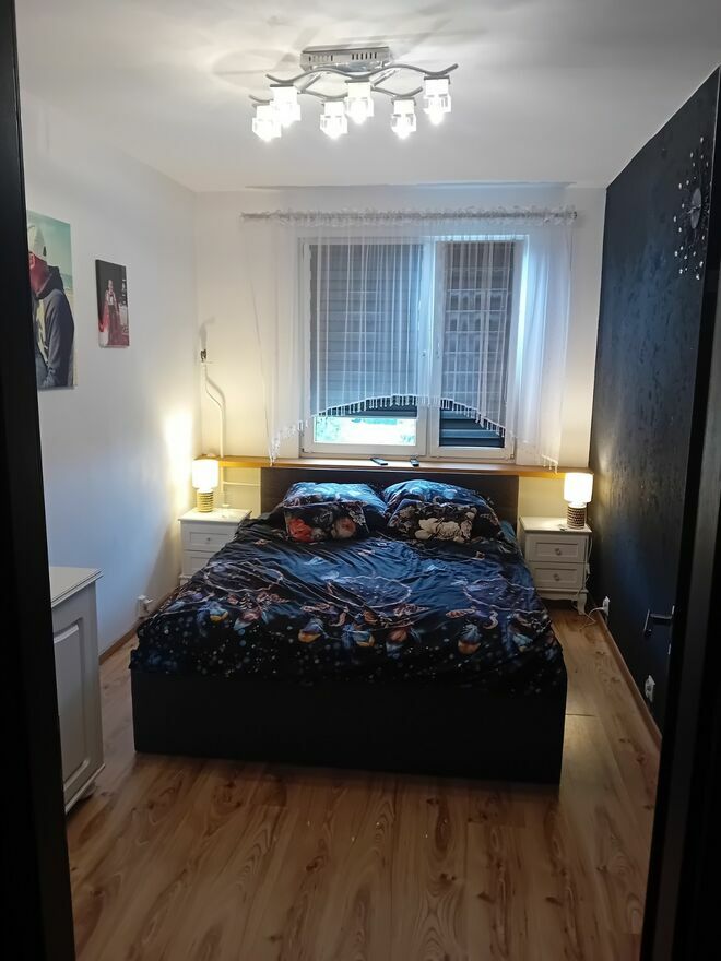 Mieszkanie o powierchni ok.52m-2 sypialnie, kuchnia z salonem, łazienka.Duża przestrzeń. Aneks kuchenny ze sprzętem AGD- płyta indukcyjna, zmywarka, okap, mikrofala, piekarnik, lodowka a także pralka pozostaje na wyposażeniu. Brak gazu- wszystko na prąd. Mieszkanie posiada aż 4 mega pojemne szafy robione pod zabudowę. W mieszkaniu jest także zamontowana klimatyzacja oraz kominek bio. Dodatkowo oświetlenie led w salonie.