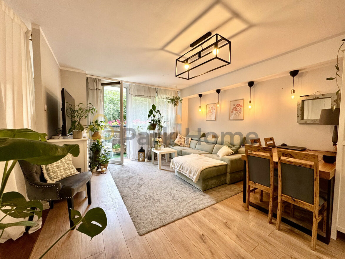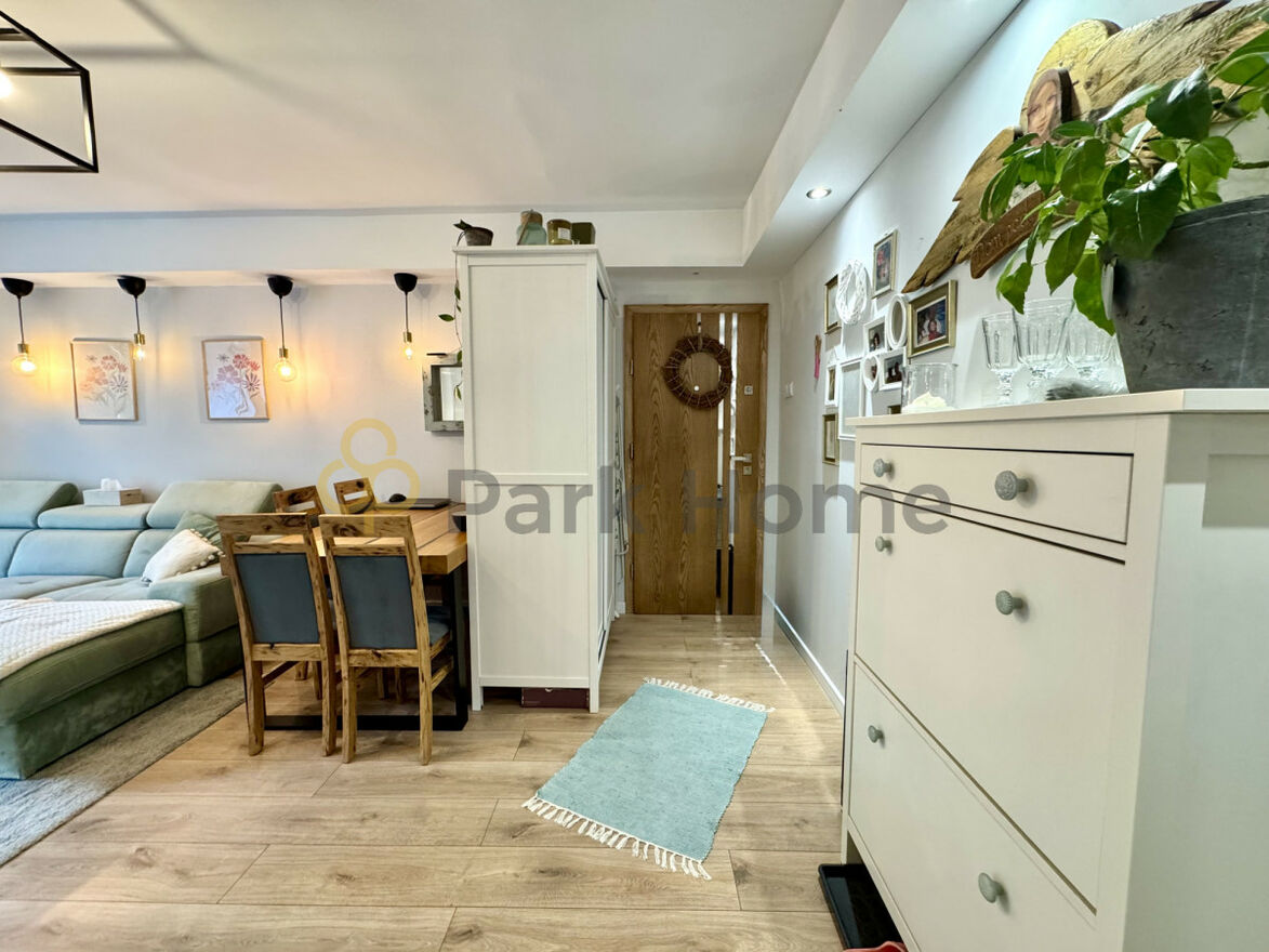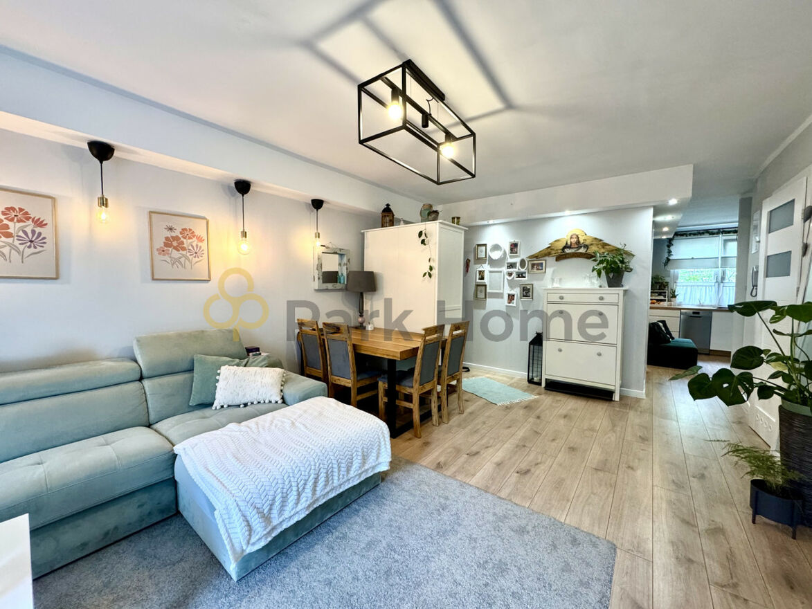 • jasnego salonu z wyjściem na balkon i przejściem do jednego z pokoi,