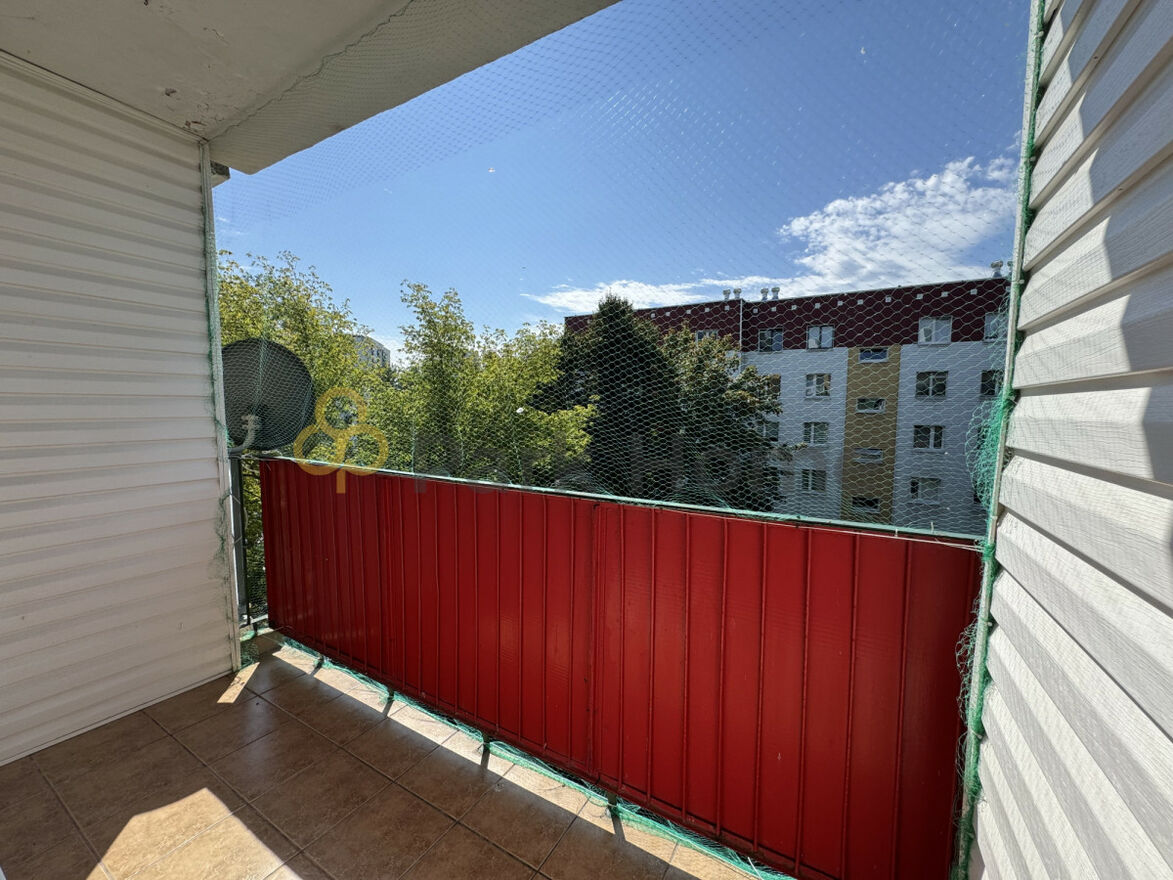 Mieszkanie składa się z jasnego, ustawnego pokoju, osobnej kuchni, łazienki, oddzielnego WC oraz przedpokoju. Duże okna zapewniają dobre doświetlenie wnętrza i widok na spokojną, zieloną okolicę. Lokal znajduje się na trzecim piętrze w zadbanym czteropiętrowym budynku z lat osiemdziesiątych. Klatka schodowa jest czysta, a sąsiedztwo spokojne.