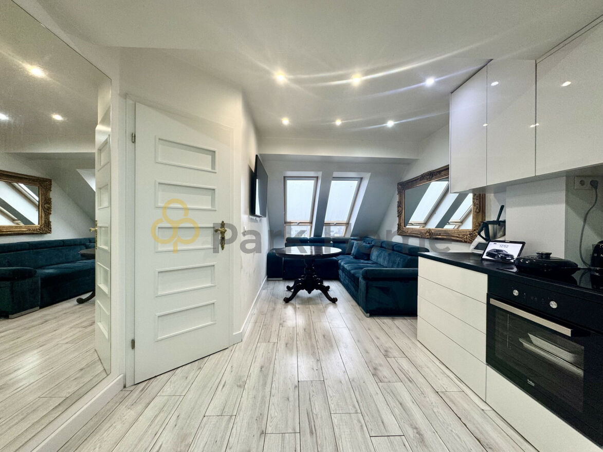 Mieszkanie jest bardzo jasne, ciepłe i przytulne, idealne zarówno do zamieszkania, jak i jako inwestycja pod wynajem. Klimatyczne skosy nadają wnętrzu wyjątkowego charakteru.