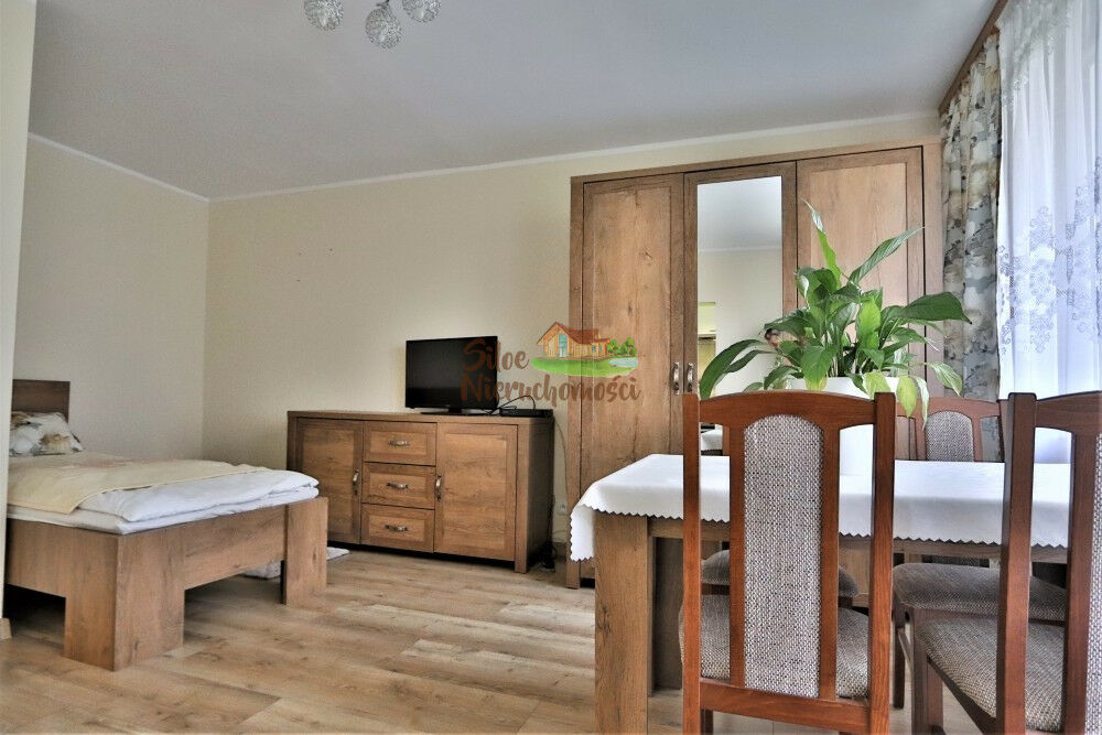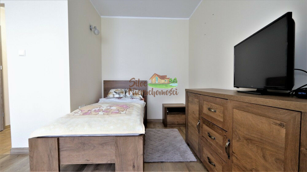 Wyposażenie Salon: pojedyncze łóżko, stół z 4 krzesłami, pojemna szafa z lustrem, komoda, stolik nocny, telewizor