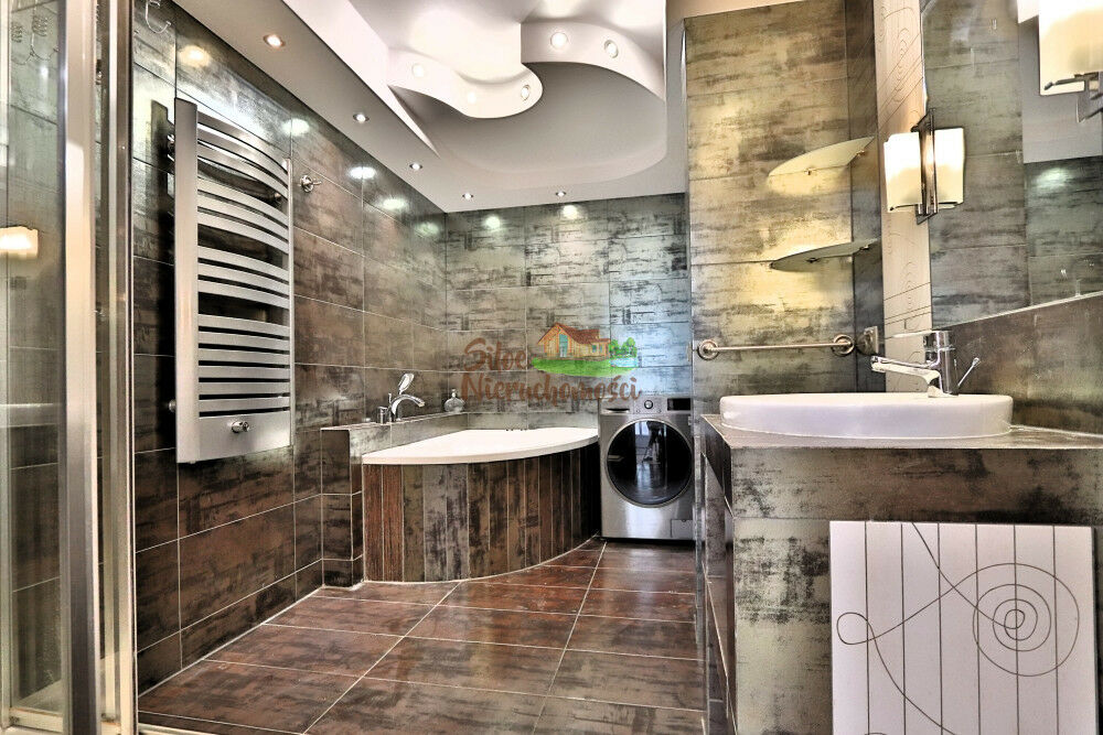 Oferta którą czytasz zupełnie odróżnia się od innych 4 pokojowych mieszkań.Całe mieszkanie zostało gruntownie przearanżowane, jest unikatowe w układzie, a zastosowane wysokiej jakości materiały potęgują uczucie ekskluzywności. Najpierw wprowadzę w zmiany wizualne i techniczne. Wymieniona została instalacja elektryczna i wodno-kanalizacyjna. Podwieszone sufity, wymienione okna PCV. Wymieniona stolarka drzwiowa na drzwi DRE. W łazience zastosowane zostały płytki Marconi w odcieniu BROWN stwarzające uikatowy design. W kuchni ten sam model lecz w innym odcieniu, Za zgodą spółdzielni został pomniejszony przedpokój, z czego powstała fantastyczna, olbrzymia, przetrzenna łazienka wyposażona w prysznic, wannę z hydromasażem, umywalkę z lustrem, miejsce na pralkę, szuszarkę na pranie, zasłonięte wc i dodatkową sporą przestrzeń. Toaleta połączona z łazienką zachowała prywatność. Poza łazienką powstała dodatkowo garderoba. Dzierżawiony pokój posiada na stałe zamknięte drzwi wewnętrzne zaś od środka zabudowane są płytami gipsowo- kartonowymi, co jednak w razie potrzeby prowadzenia działalności można łatwo przekształcić.