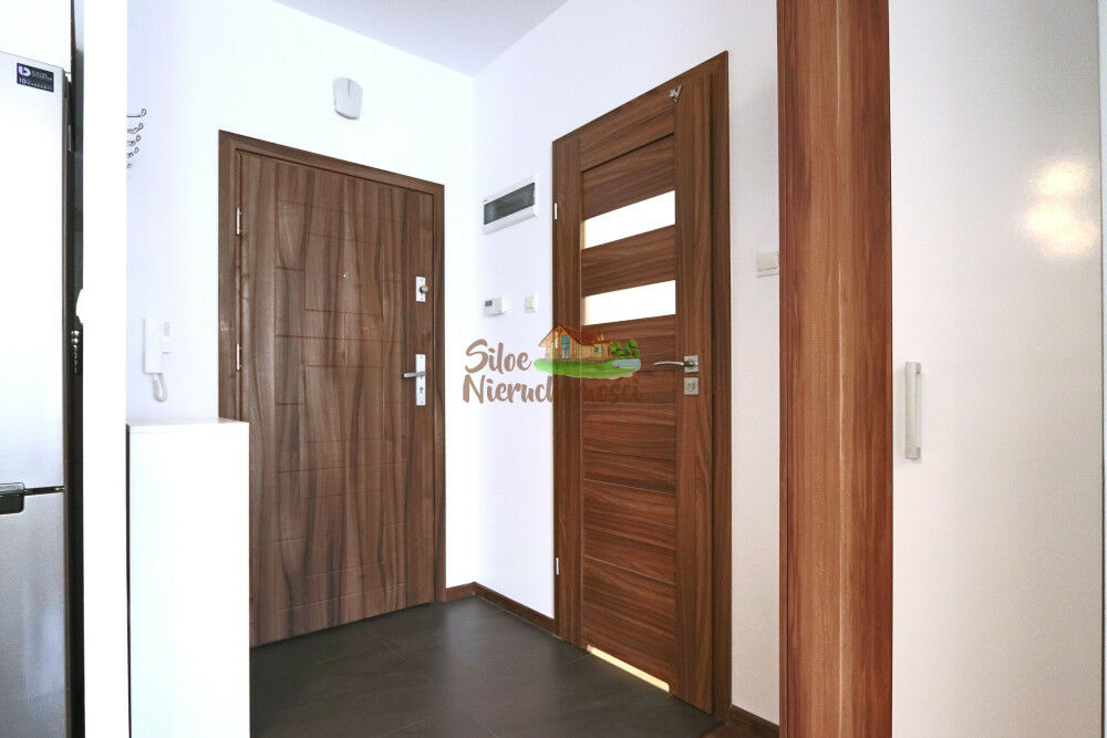 Kuchnia została wyposażona w meble w zabudowie oraz podstawowe sprzęty. W salonie przy aneksie jest również miejsce na stół z krzesłami, dzięki czemu to pomieszczenie może pełnić rolę jadalni.