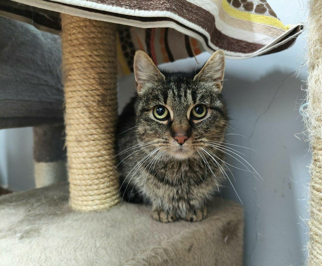 Fiołeczka to młoda, około 2 letnia piękna koteczka. Jest nieduża i drobna, cudnie umaszczona, szczególną uwagę zwracają jej śliczne, wyraziste oczy. Fiołka na początku pobytu w schronisku troszkę się nas obawiała, ale ciekawość i potrzeba bliskości spowodowały że szybko zaczęła szukać z nami kontaktu. Fiołka jest ultra delikatna, eteryczna, wrażliwa i bywa płochliwa. Fiołeczka z każdym spotkaniem zaskakuje nas jednak postępami jakie robi. Wręcz pragnie kontaktu z człowiekiem, a przy odpowiednim podejściu i zachowaniu zasad, które sprawiają że kotka czuje się bezpiecznie okazuje się być wielkim miziakiem. Kocha być głaskana, ociera się o człowieka, mruczy i delikatnie prosi o więcej, czasem nawet staje na tylnych łapkach i zaczepia słodko noskiem przypominając subtelnie o sobie. Kotka jednak wciąż uczy się funkcjonowania z człowiekiem, niepokoją ją niektóre dźwieki, gwałtowne ruchy i niespodziewane sytuacje - wtedy Fiołka płoszy się, a przestraszona lub przebodźcowana niekiedy potrafi delikatnie złapać za rękę.Fiołka obecnie boi się zabawek, a gdy bawimy się z innymi kotami ucieka, ewentualnie obserwuje z bezpiecznej odległości. Również nie przepada za braniem na ręce, nie czuje się wtedy dobrze, woli czuć grunt pod łapkami.