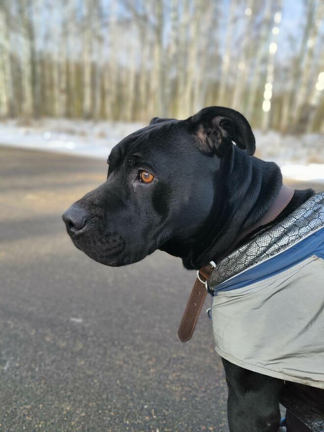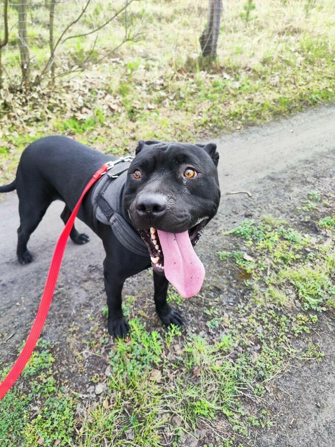 Puma może i budzi respekt, ale serce ma dobre, piękne i kochające. Puma jest młodym, około 3 letnim psem. Pomijając pierwsze chwile po wyjściu z kojca i gdy w pobliżu są inne psy Puma jest grzeczny i ładnie chodzi na smyczy. W kojcu nie niszczy, nie wynosi słomy z budy, nie ściąga zasłonki. Szczególnie teraz gdy jest zimno dużo czasu spędza w budzie, a jego jedyne chwile radości to max 2 spacery w tygodniu podczas których może poeksplorować i spędzić czas z człowiekiem.