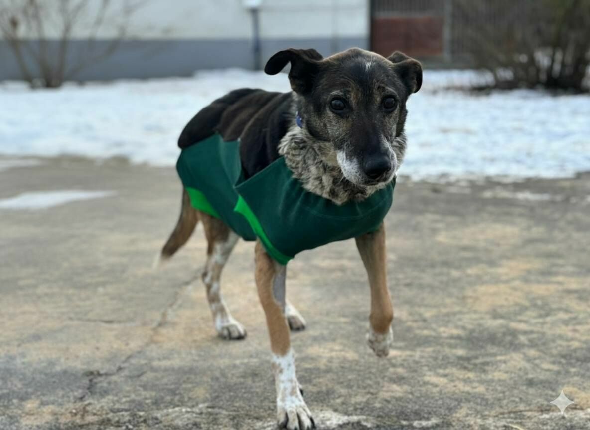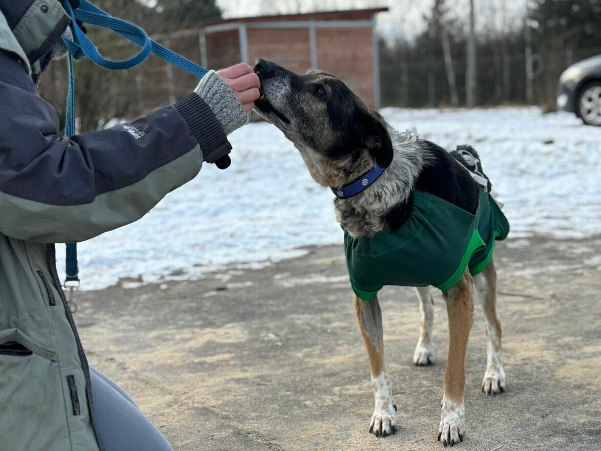 Kora to nieduża, około 10-letnia sunia, znaleziona samotnie w polu przez pracowników gminy. Nie znamy jej przeszłości, ale wszystko wskazuje na to, że życie nie obchodziło się z nią delikatnie.W kojcu Kora większość czasu śpi – jest spokojna, wyciszona, typowa seniorka. Niedosłyszy, dlatego czasem może nie reagować od razu, szczególnie na dźwięki dochodzące z daleka.