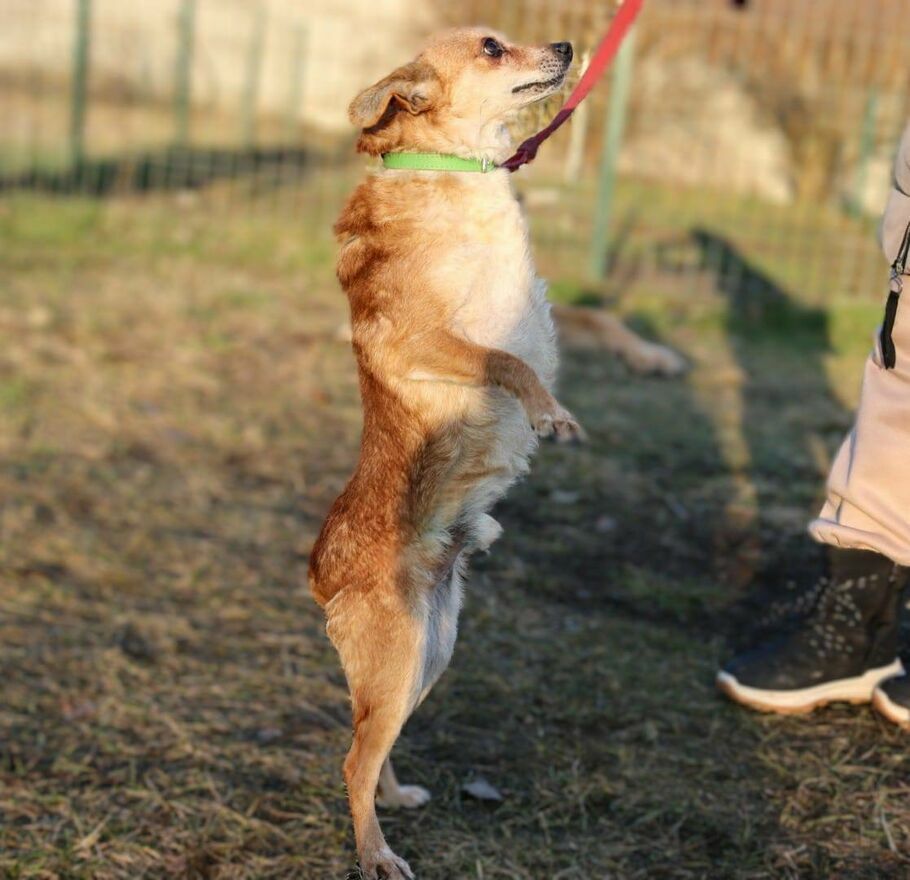 To wesoły i energiczny chłopak, który chętnie wychodzi na spacery i ładnie chodzi na smyczy. Na razie nie jest typem typowego przytulasa, ale lubi głaskanie i wyraźnie potrzebuje czasu, by w pełni zaufać i się otworzyć.