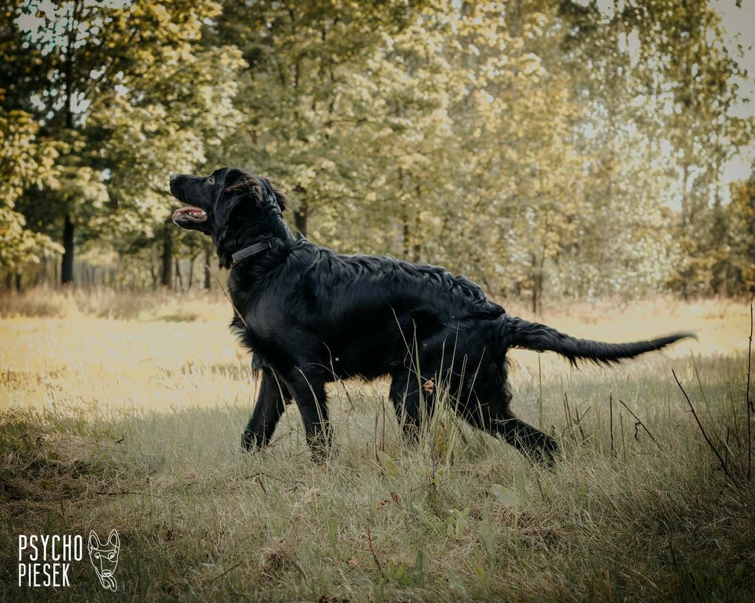 Jest w typie flat coated retrievera – piękny, czarny, błyszczący, z wiecznie merdającym ogonem i uśmiechem od ucha do ucha!